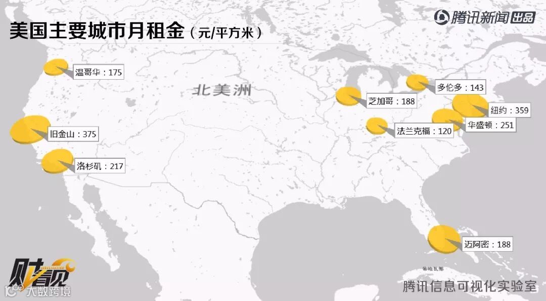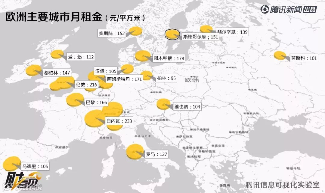 线上房屋交易平台Nested近日发布了一份2017年全球租房可负担性情况报告。这项报告公布了全球50个大城市单位面积的年租金(英镑/平方米)。为了让中国读者感受更直观,腾讯信息可视化实验室根据最新汇率,将单位换算为元/平方米。