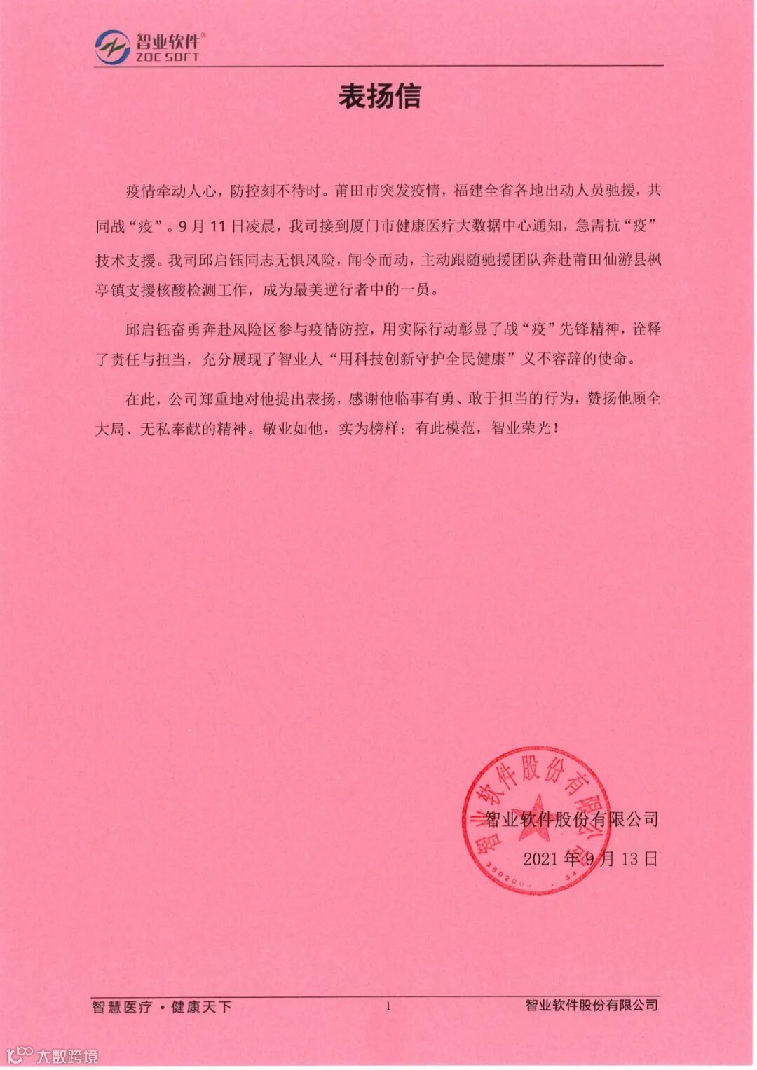 表扬榜样力量 为智业战“疫”先锋邱启钰点赞!