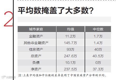 确实从2012年的数据来看,中位数的各项数据比均值要低很多,但是从负债的角度来看,依然是比较低的。中位数显示的家庭负债更是趋近于0,负债率也是非常低。