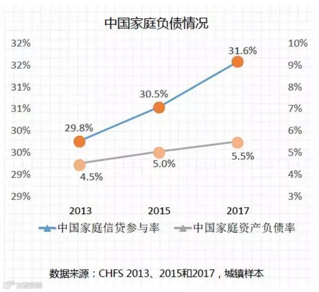 如果理解无误,从2012年结果中我们可以看到,中国有负债的家庭不到4成,也就是说有6成家庭没有负债。2017年家庭负债率比2012年提高20%,我们同比例放大4成的结果,可能意味着2017年有负债的家庭上升到5成左右。