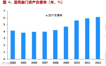 另根据东方证券测定的家庭负债率:2012年我们的家庭负债率为6%,如果以西南财大的增速20%计算,如今的家庭负债率可能为7.2%。