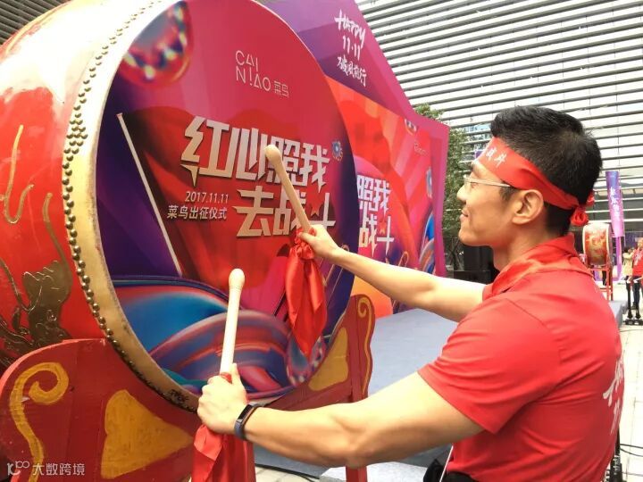 极富激情的出征仪式,阿里员工摇旗、呐喊、击鼓。