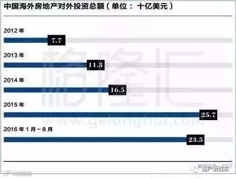 根据胡润发布的《2017中国高净值客户海外置业展望》的数据显示,中国海外房地产投资总额不断增加,且增速明显加快,2016年中国海外房地产投资再创新高达330亿美元。