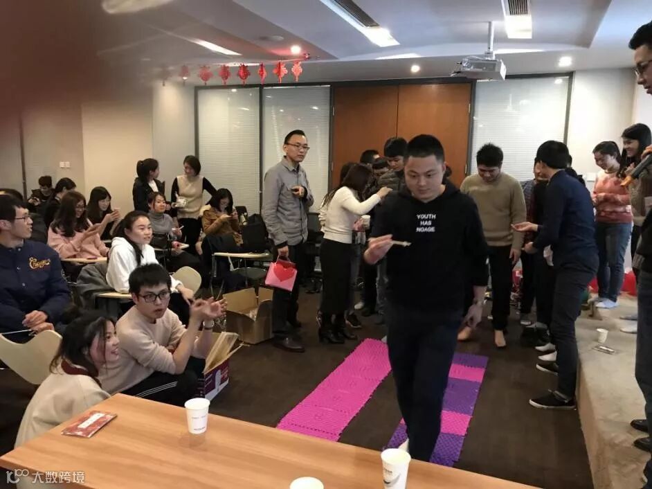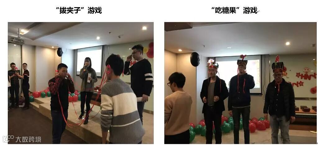 还有穿墙术、拔夹子和吃糖果也同样有趣。其中拔夹子游戏就需要一点“狠”劲了,在这个游戏中就需要男士们出场了,两方各派出一名队员,在对方脸上任意地方夹上4个夹子,双方夹子是连着线的,互相拉扯,最快把夹子都扯掉的胜。吃糖果考验的则是“准”,两方各派出2名队员带上吃糖诸葛帽,在最快时间内把糖果吃掉,最快吃到糖果的的胜。穿墙术,两方各派出2名队员,用脸把保鲜膜撑破,最快把保鲜膜捅破的胜,使用脸以外的捅破判定为输。李总和季总的强强对决也让我们万分期待。