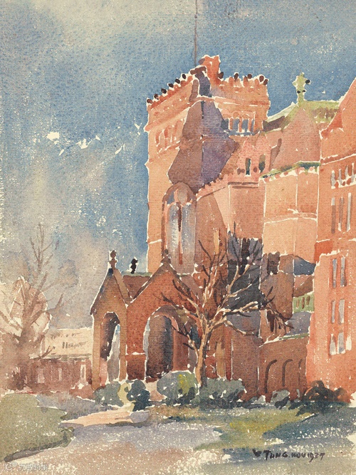 唯一不同的是我的祖父童寯。他的性格天生沉默寡言,更多的是发挥在他的绘画上。在宾大学习期间,他水彩画的能力得到了极大的成长。后来到欧洲旅行时,他一下创作了200多幅水彩画、炭笔画,专业画家看了都觉得是顶尖水平,叹为观止。