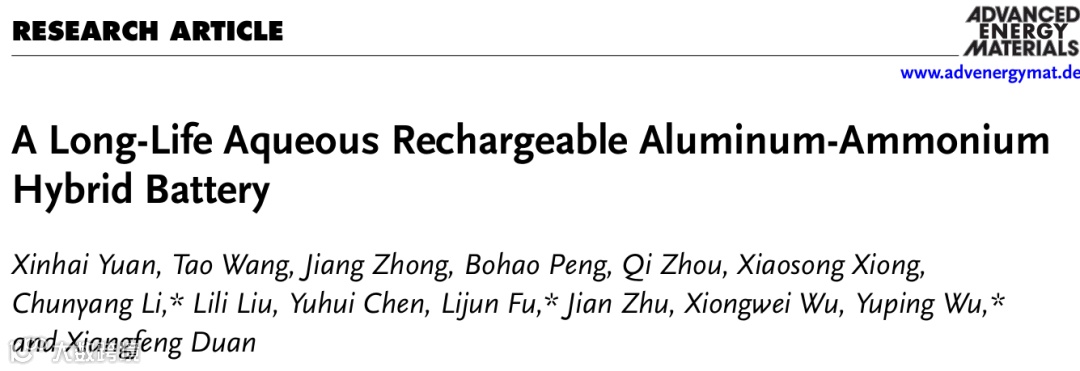基于高度稳定的K-FeHCF阴极以及成本较低的金属铝阳极,提出了一种概念验证型的水系可充电铝-铵混合电池。该电池实现了1.15V的平均工作电压、优异的倍率性能以及89.3Whkg⁻¹的能量密度,且展现出超过10000次循环且无容量衰减的卓越循环稳定性。因此,该工作为设计用于电网规模储能的高性能水系铝基电池提供了新的思路。