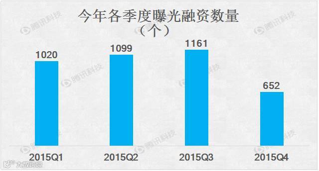其中,2015年Q1融资案例1020个,Q2融资案例1099个,Q3融资案例1161个,Q4融资案例652个。
