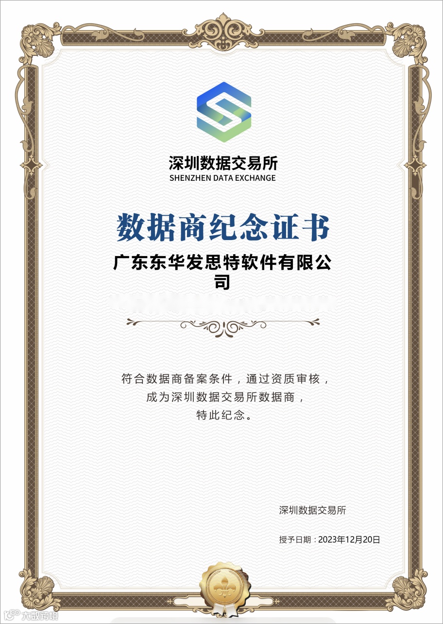 近日,广东东华发思特软件有限公司继成为首批广东省数据经纪人后,凭着丰富的数据产品体系及专业的数据服务能力成功入驻深圳数据交易所,成为官方授权的数据商。