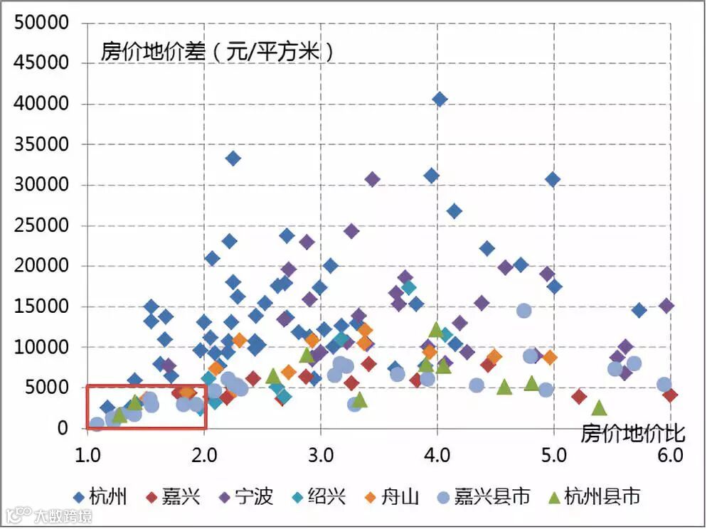 5、嘉兴及其下属县市盈利空间逼仄。在近一轮市场行情中,得益于上海、杭州购房需求的溢出性利好,嘉兴市高铁沿线房价快速上涨,投资热度也快速上升。但是在地价水平高企、而房价滞涨的情况下,目前的盈利性风险已经开始出现。
