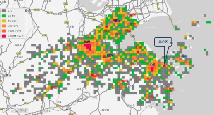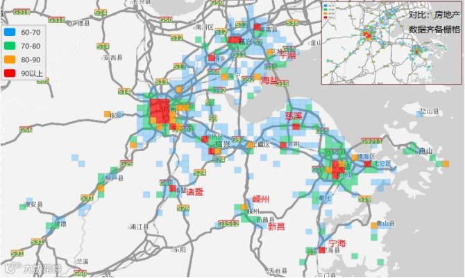 图:房地产+大数据覆盖杭州湾城市群栅格示意图