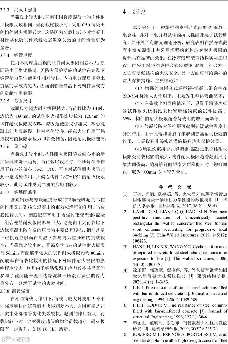 论文赏析‖增强约束拼合式轻型钢-混凝土组合柱抗火性能试验研究
