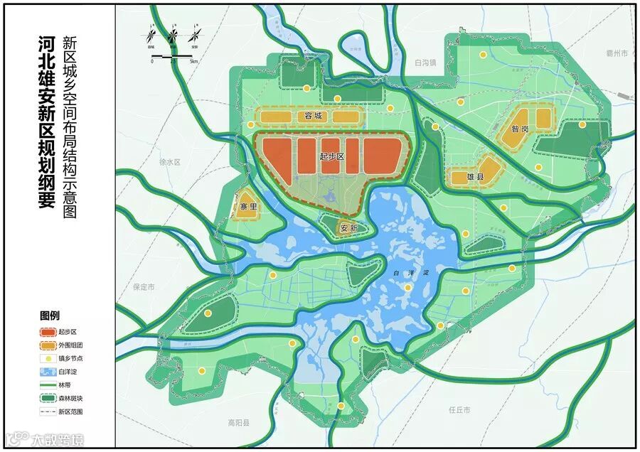 “五辅”即雄县、容城、安新县城及寨里、昝岗五个外围组团,全面提质扩容雄县、容城两个县城,优化调整安新县城,建设寨里、昝岗两个组团,与起步区之间建设生态隔离带。