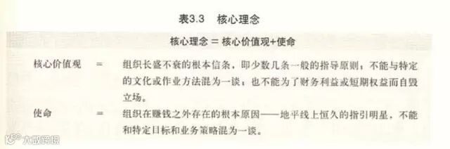 :指引、激励公司上下的核心观念,亦即是核心价值和超越利润的目的感。