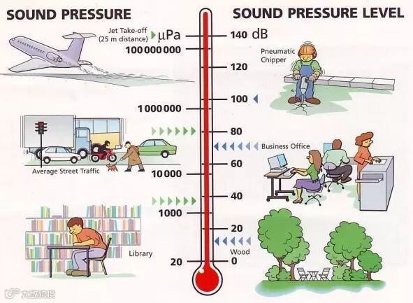 由于可检测到的声压幅值范围很大,而人耳对声压刺激的反应与对数规律有关,习惯上在表示声学参数时,都是取测量值和参考值的比率的对数值,即采用dB标尺。