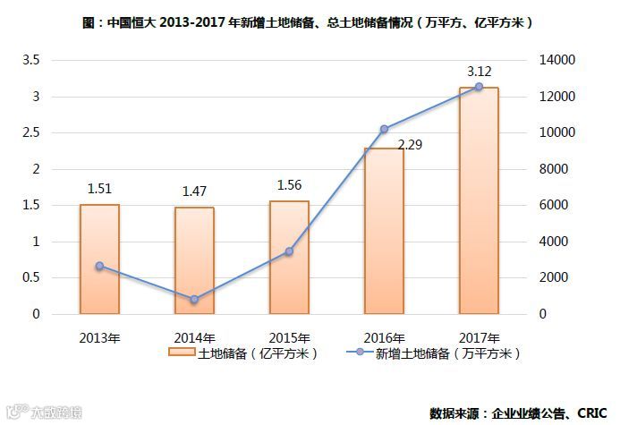 2017年,在“规模+效益型”战略和”三低一高”模式转变下,恒大转型效果显著,规模和效益齐头并进,再创佳绩。中国恒大2017年实现合约销售金额约5009.6亿元,完成全年销售目标的111.3%。全年新增土地建面1.26亿平方米,总土地储备达3.12亿平方米,土地原值高达5336亿元,土储丰富、货值充裕。营业收入3110.2亿元,同比大幅上涨47.1%,位列行业首位;总资产达17618亿,同比增长超3成,继续领跑所有房企。核心净利润更是超越原来利润之王中海地产,大幅上升,突破400亿元大关,实现规模和效益的双丰收。