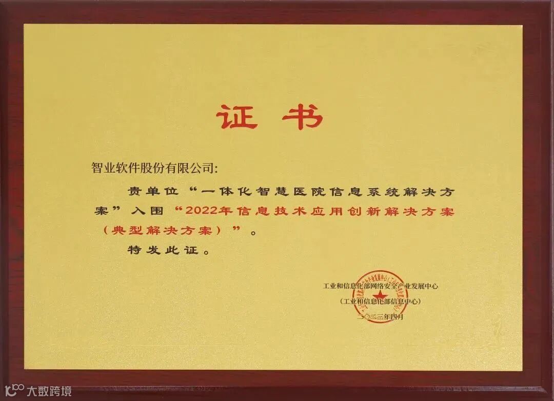 日前,由工业和信息化部网络安全产业发展中心(工业和信息化部信息中心)牵头开展的“2022年信息技术应用创新解决方案”评选结果在第六届数字中国建设峰会的数字技术融合创新应用研讨会中正式揭晓,智业软件的“一体化智慧医院信息系统解决方案”成功入围,成为经工业和信息化部认可的可复制、可推广的典型解决方案,展现了智业软件在信息技术应用创新方面的快速进展和领先实力。