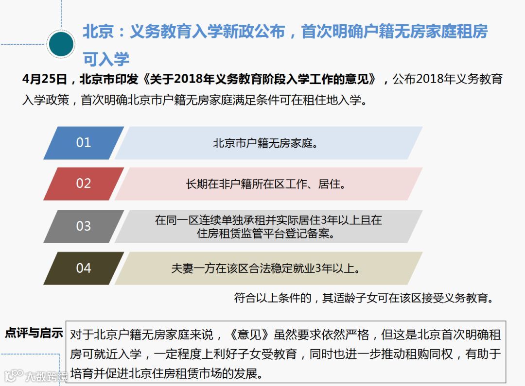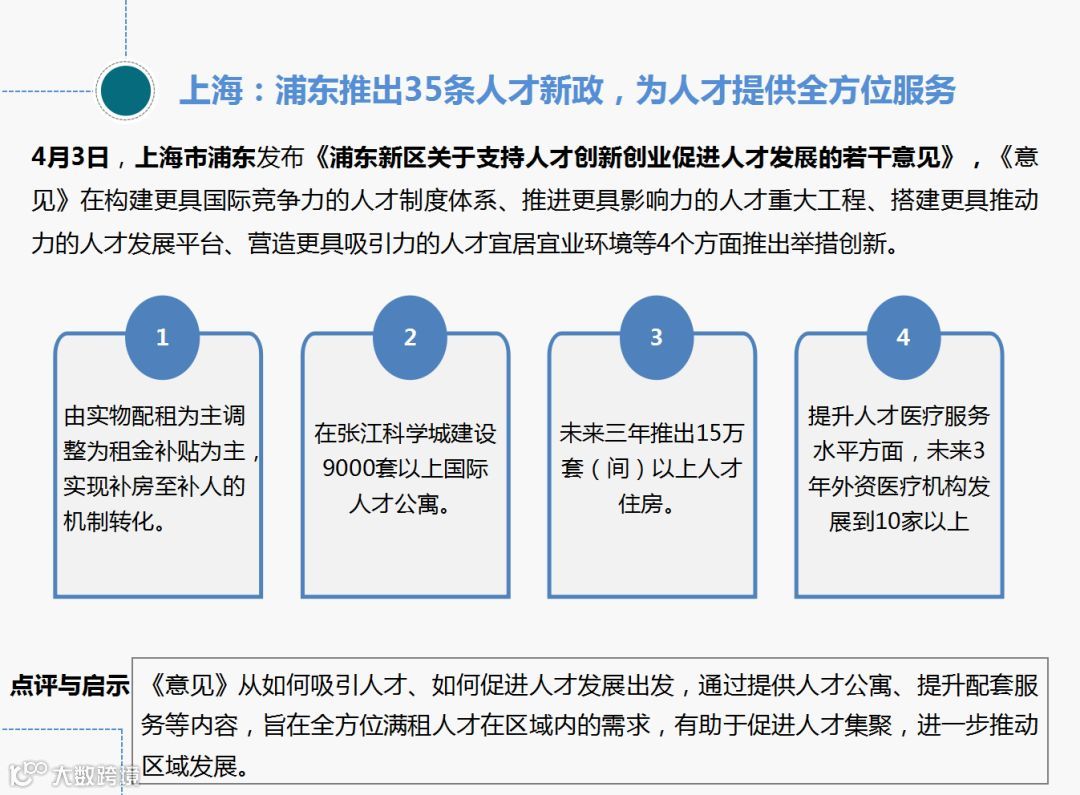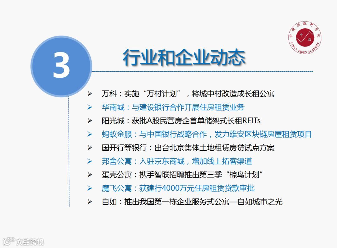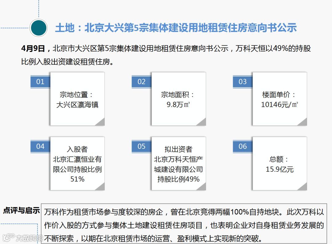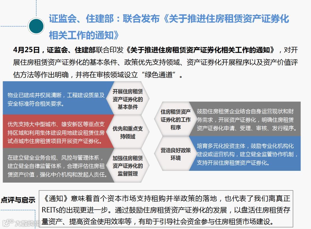 4月,首个资本市场支持租购并举政策落地,有助于引导社会资金参与住房租赁市场建设;北京首次明确户籍无房家庭租房可入学,租购同权迈出一步;各地人才争夺持续发酵,人才公寓建设、租金减免等成为揽才的重要手段。土地方面,北京大兴第5宗集体建设用地租赁住房意向书公示,万科天恒49%入股出资建设租赁住房;杭州租赁用地推出力度加大。另外,重点企业长租品牌业务发展、与各大银行的合作等持续推进。