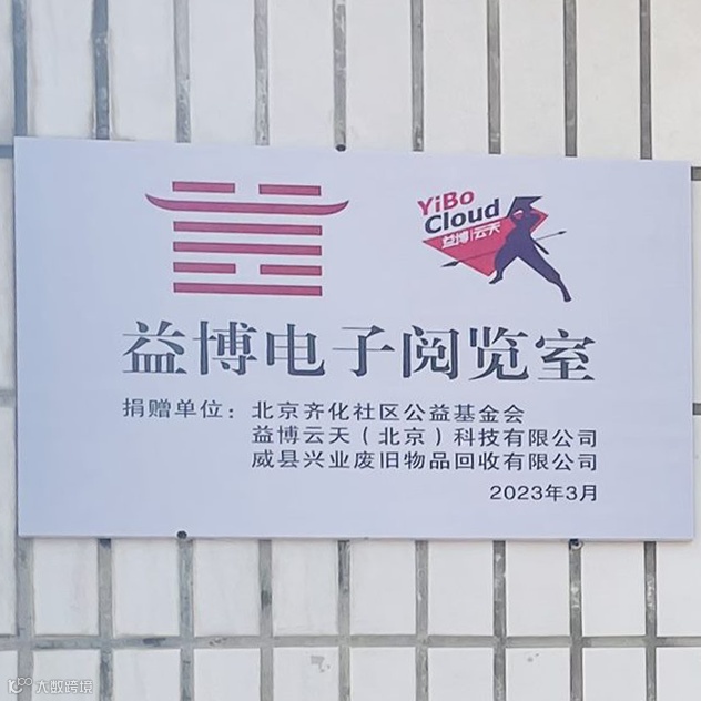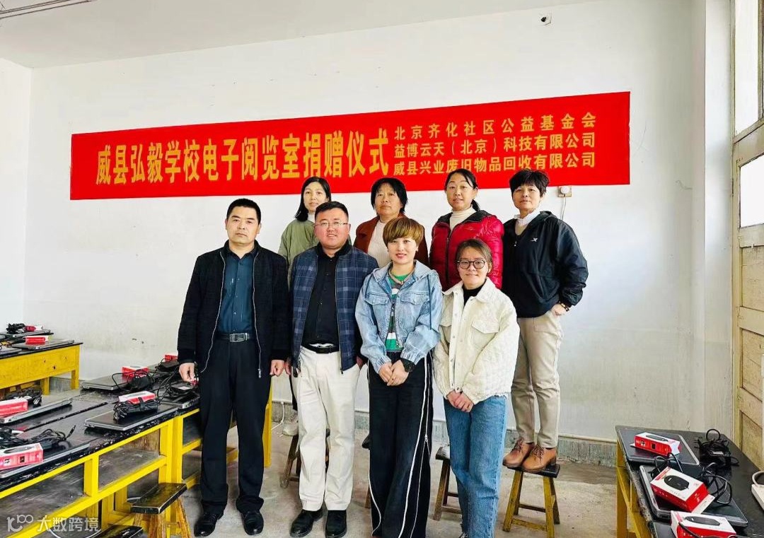 2023年4月6日益博云天联合北京齐化公益基金会、威县兴业废旧物品回收有限公司,为威县弘毅学校带来了“电子阅览室”并开展捐赠仪式。