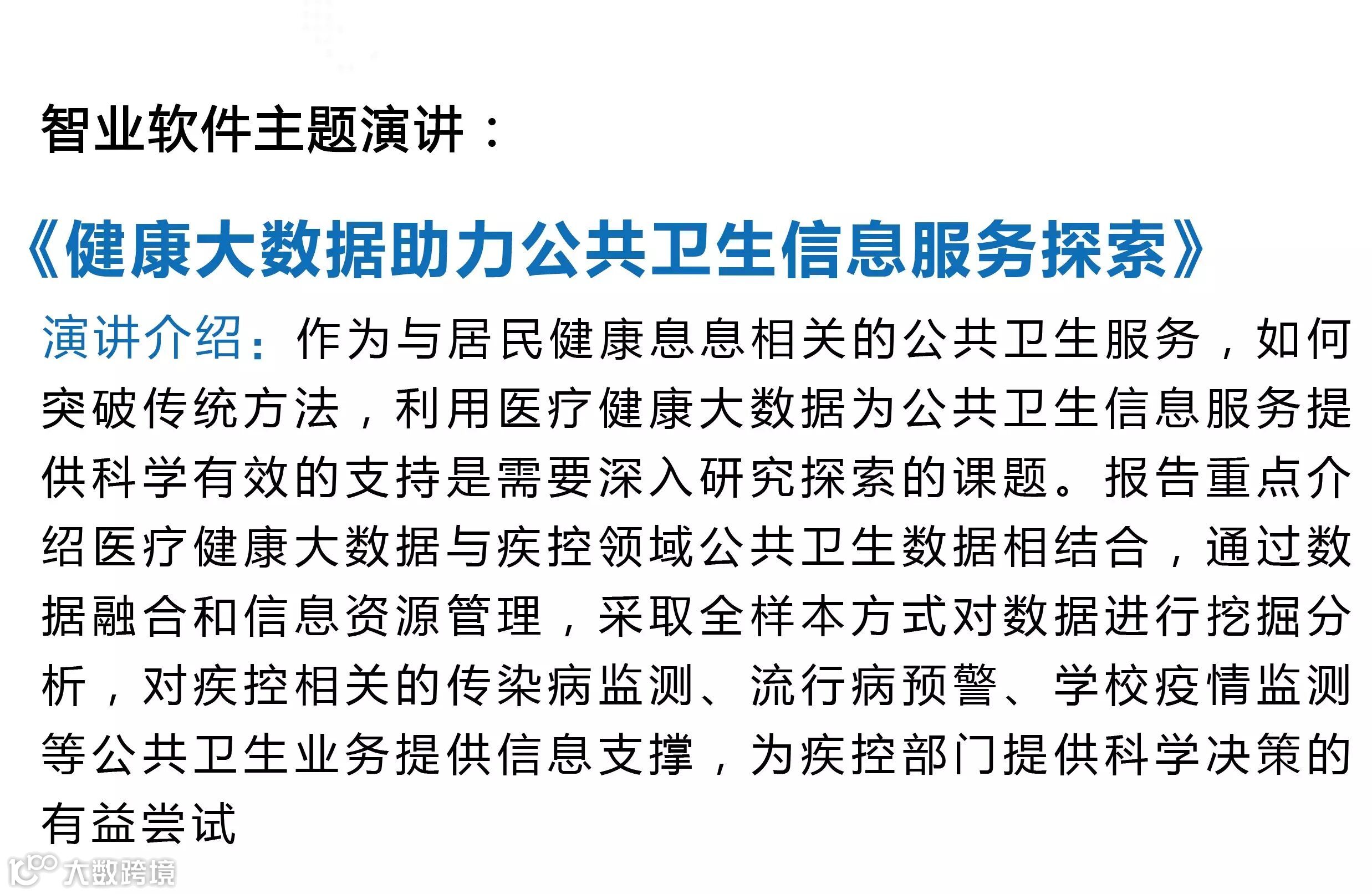 由中国卫生信息学会和《中国卫生信息管理》杂志社举办的“2015中国卫生信息技术交流大会暨两岸四地电子健康论坛”将于2015年8月6-7日在苏州市国际博览中心隆重召开。智业软件多名技术专家将会为大家介绍《健康大数据助力公共卫生信息服务探索 》及《基于分级诊疗的健康服务实践》等内容。