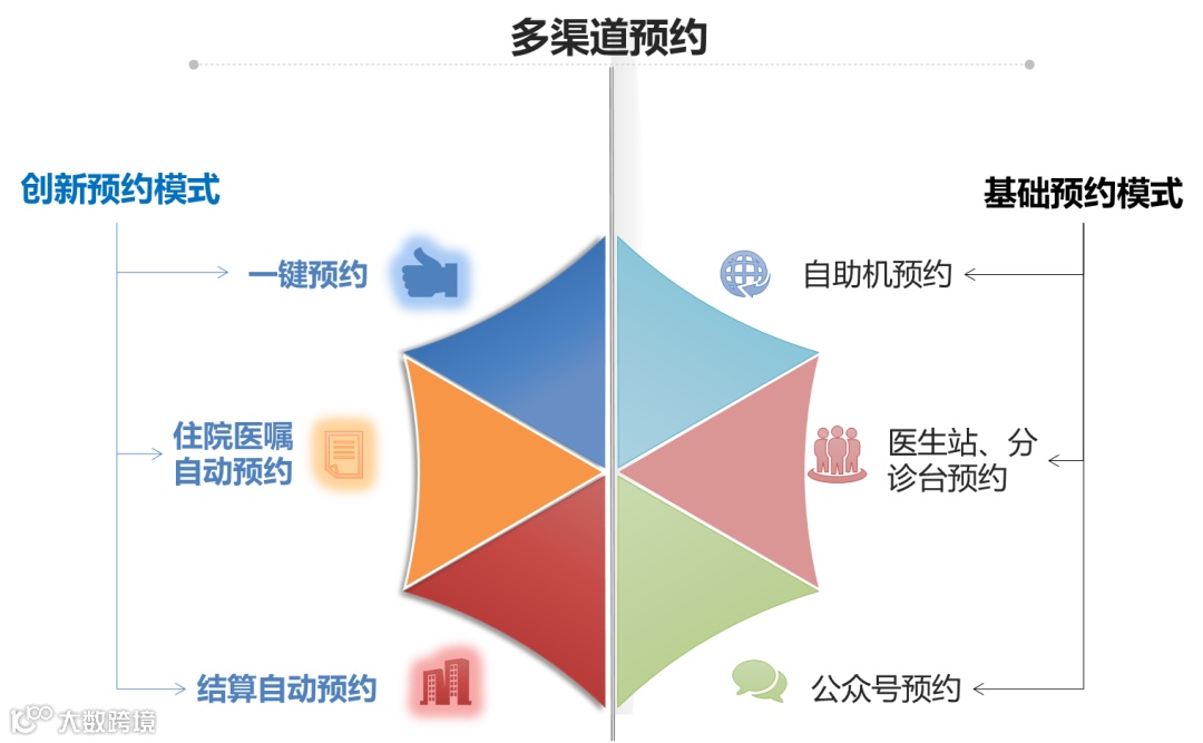 为适应院内不同业务的预约需求,全资源预约平台支持预约到医生、科室、诊室等多种预约模式。同时支持按工作量优先、按剩余号源优先、自主分配、机器分配等多种预约策略,为各个科室定制个性化的预约模式,实现精准预约。