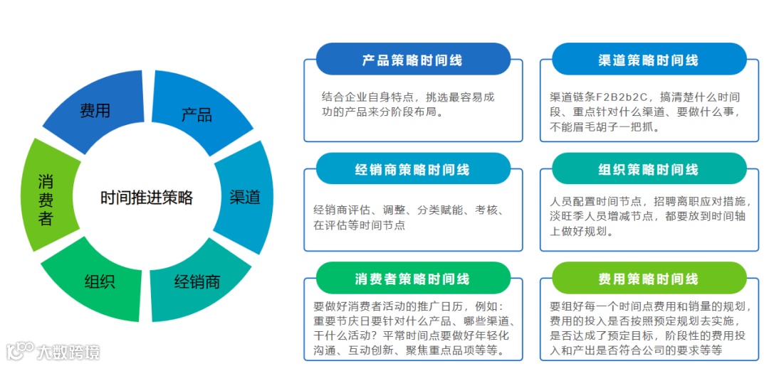 最后,我们把六大策略的时间轴整合,放到一张图上,在水平方向,我们就可以清晰地看到每一个时间段该干什么,要达成什么样的效果。