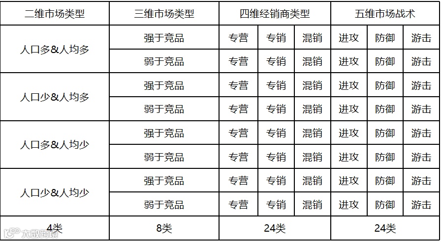 此时的核心工作和战略市场几乎相同,不同是要注意市场容量小,按照费用预算,可用资源也会相对较少,如何做到低成本网点的有效覆盖?科学合理的规划资源投入就显得尤为重要。