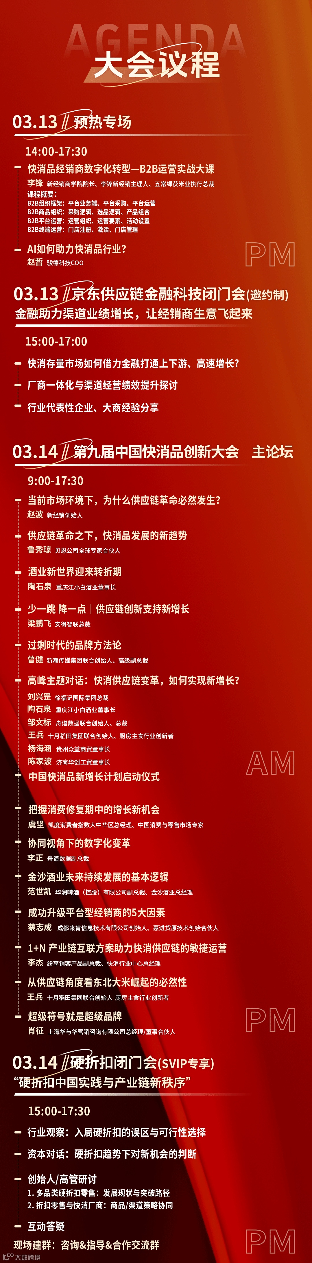 2024年3月14日-16日,第九届中国快消品创新大会暨第二届中国快消品硬折扣大会&第二届中国快消品经销商大会将在成都盛大举行。