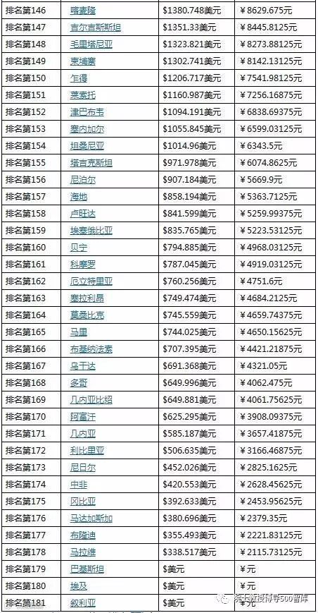 世界经济信息网:2017年人均GDP国内生产总值世界排名