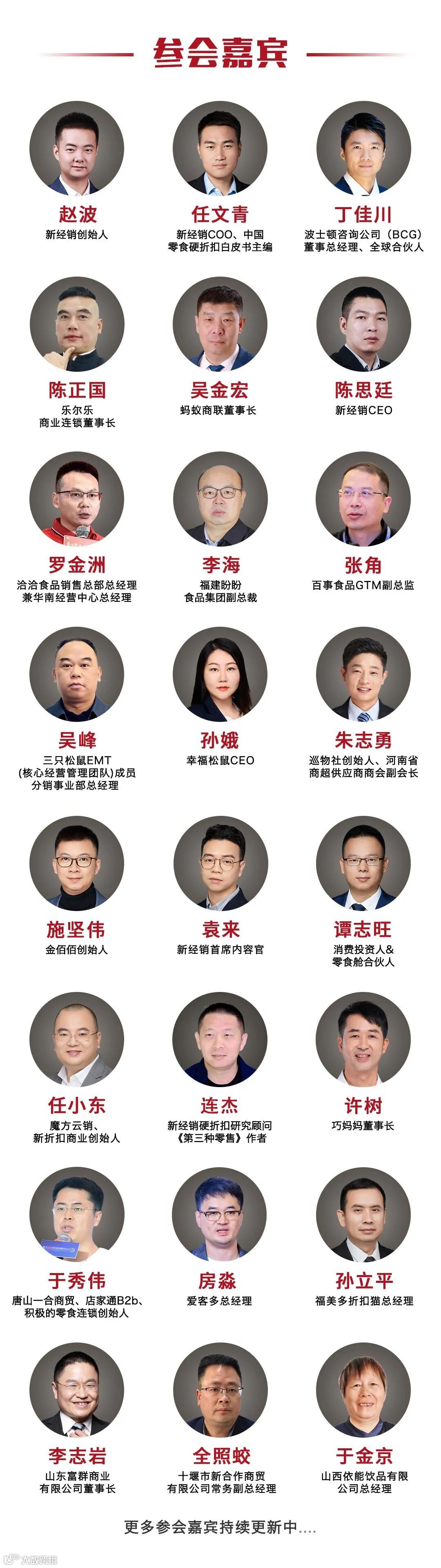 本次大会是全行业首个聚焦硬折扣主题的大会。聚集硬折扣连锁品牌、快消品头部品牌、传统零售企业、快消品全国优秀大商,以及行业的服务商、研究专家: