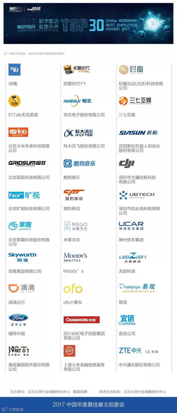 以下为2017中国年度最佳雇主最具智造精神雇主30强榜单。