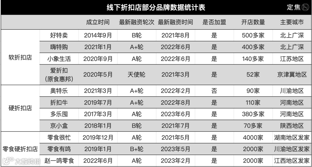 总结来看,这批折扣零售企业大多在疫情期间成立,在2021年和2022年集中融资,按照开店数量和布局区域,目前已经形成了明显的赛道格局。