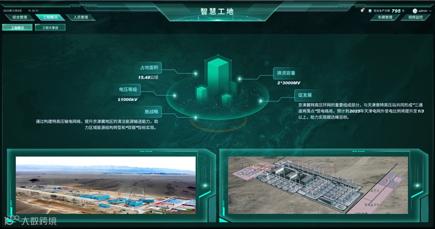 作为两项工程智慧工地建设的主要参建单位,公司深入研究特高压施工专业性、高风险性特点,以切实提升施工质效为核心目标,结合大数据、云计算、物联网、人工智能等前沿技术,打造“数智组网+智慧管控”一体化平台。项目团队主动响应业主需求,高效推进平台落地,实现人员车辆实名制管理、施工环境实时监测、安全风险精准预警、工程进度动态模拟等全业务全流程数字化管控,保障了两项工程施工安全有序、质效双优,圆满完成2025年度各项建设任务。
