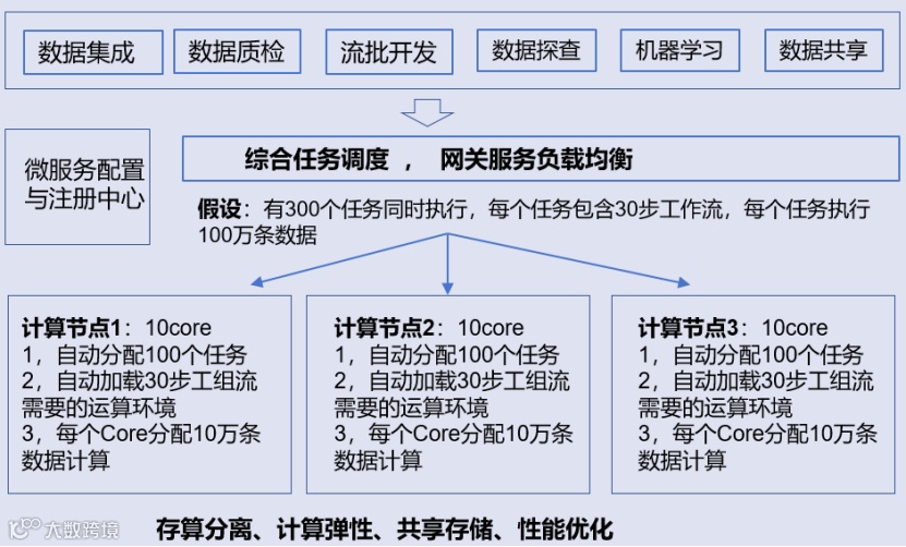 DolphinScheduler 是一个用于大规模任务流程调度/编排的开源平台,“能够支持每天数千万任务”的调度量级,其在性能方面有多项优势。它采用多 master + 多 worker的分布式架构,支持动态添加/移除 worker 节点,master 节点也可做高可用。