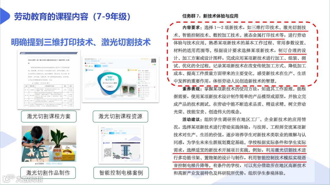 郭丽静老师首先以《义务教育课程方案和课程标准(2022年版) 》 (以下简称“新课标”) 下的综合实践、劳动教育、人工智能及信息科技课程为切入点,向与会老师们分享了当下义务教育阶段科创教育所面临的新要求、新机遇和新挑战,以及贴近真实教学场景的一些创新教学实践案例。