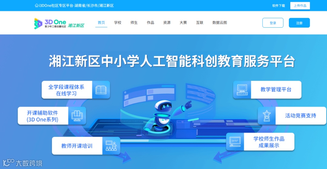 为更好服务区域教育高质量发展,湘江新区以数字化转型为契机,搭建起区域中小学人工智能科创教育服务平台,以实现优质资源的共创、共享,满足区域学校个性化的教育发展需求,借助数字化的手段,探索创新教育新范式。