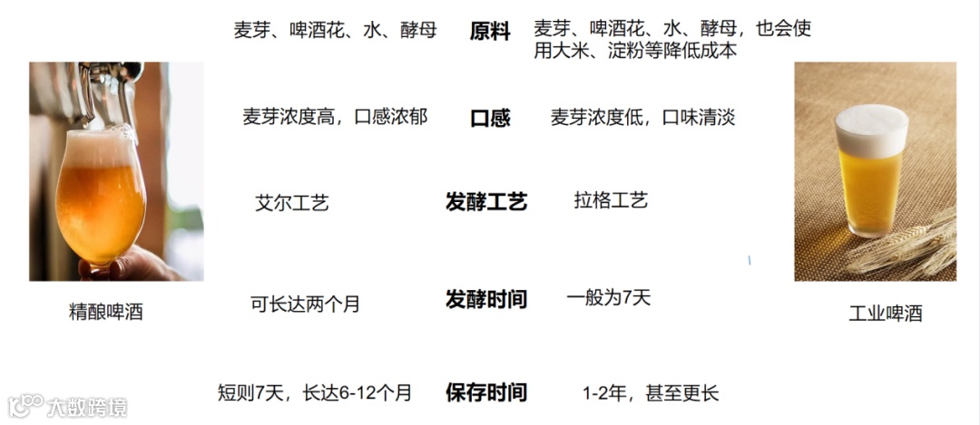 也就是精酿啤酒采用传统手工酿造方式,以小批量生产为主,品牌更加独立,同时相比较流水线上的大众化啤酒,精酿啤酒更加小众。