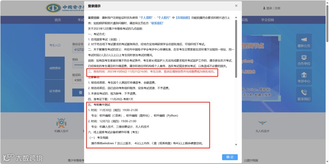 1.注册并登录【中国电子学会考评中心】官网,编辑【报名信息/查看详情】