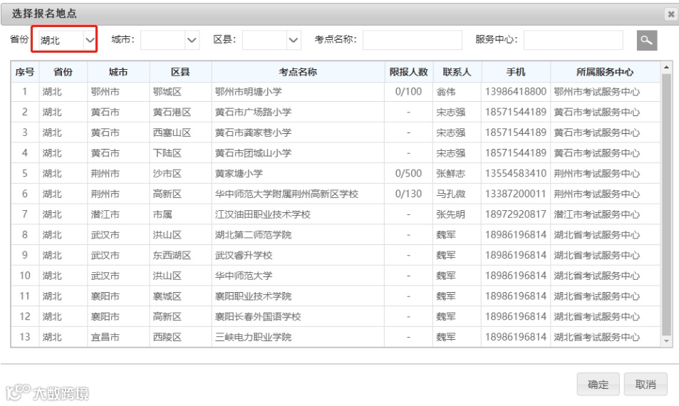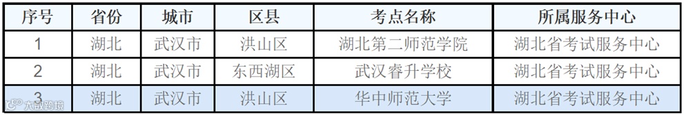 本次考试为线上考试,实际考试时无需到报考点进行考试,证书也是国家统一发放。为方便向您提供更好的考试服务,进入考点选择界面后,请在"考试地点"处选择所在区域在湖北省武汉市的考点(如下图)。