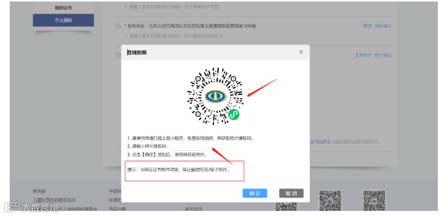 2. 自2023年起,增加免费在线拍照功能,操作步骤如下: