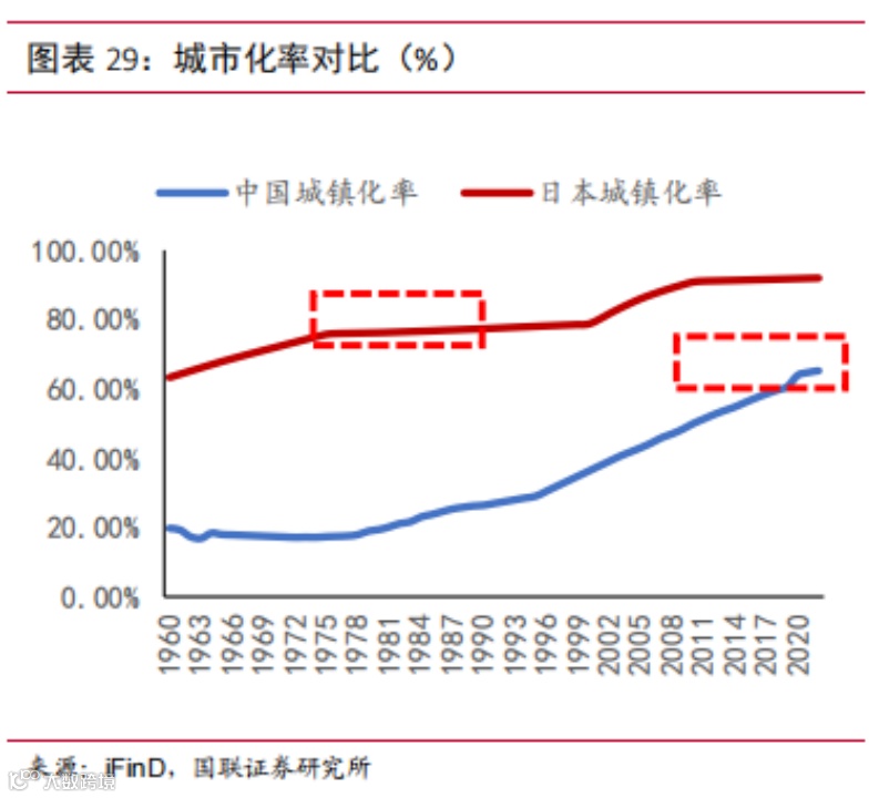 1960年,日本青年大批量去都市企业打工,直到70年代才逐步放缓,日本的城镇化率在1990年达到77.4%。