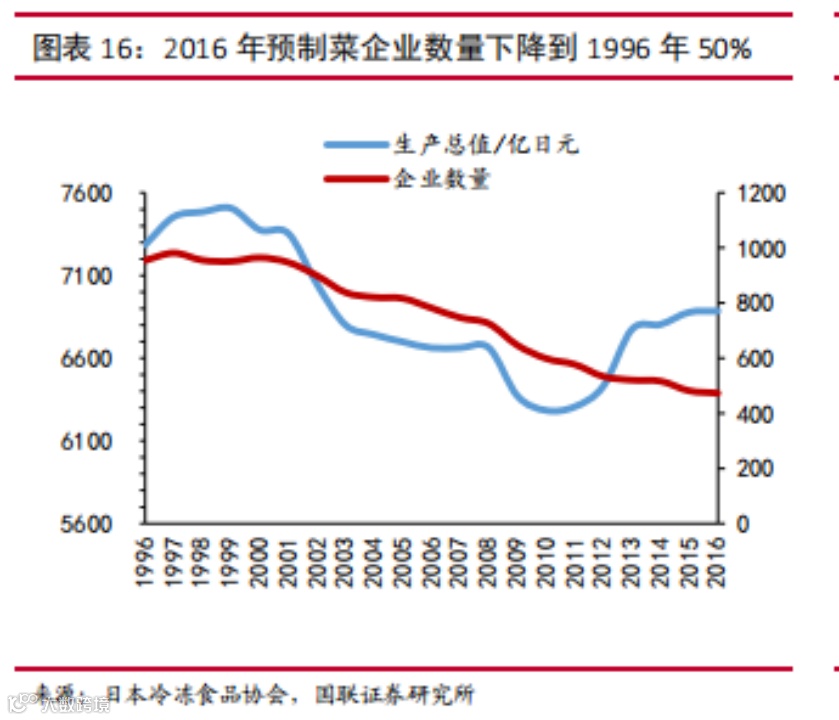 据日本冷冻食品协会数据,企业数量从1996年的959家,下降到2016年的476家,降幅竟达到50%。
