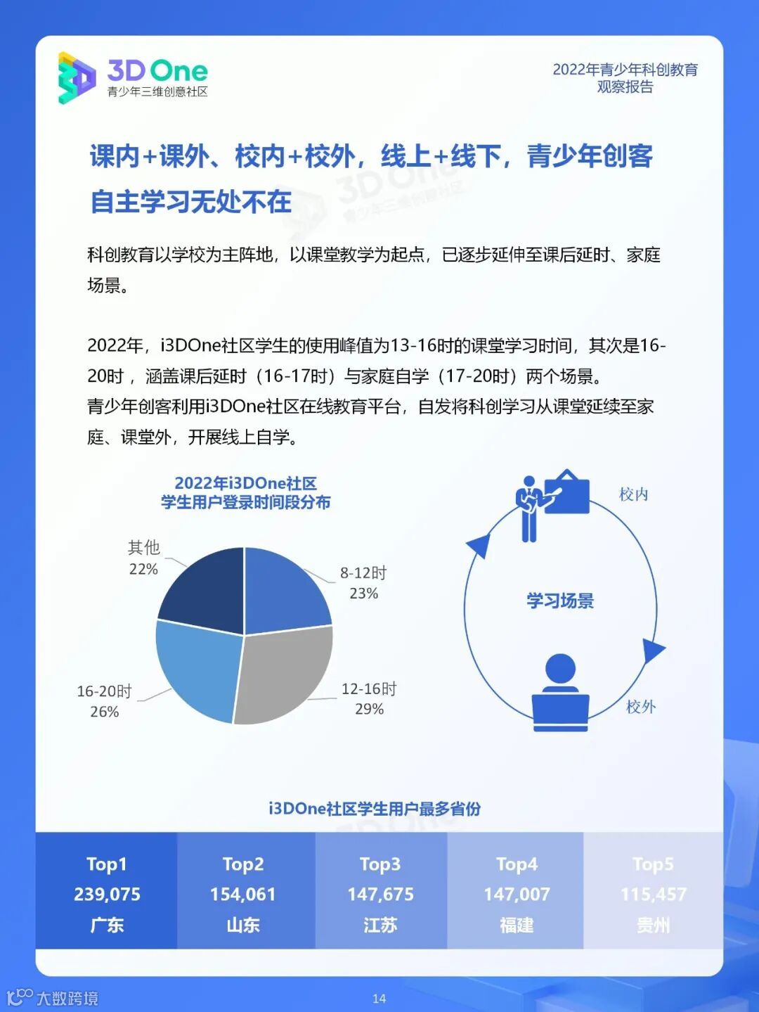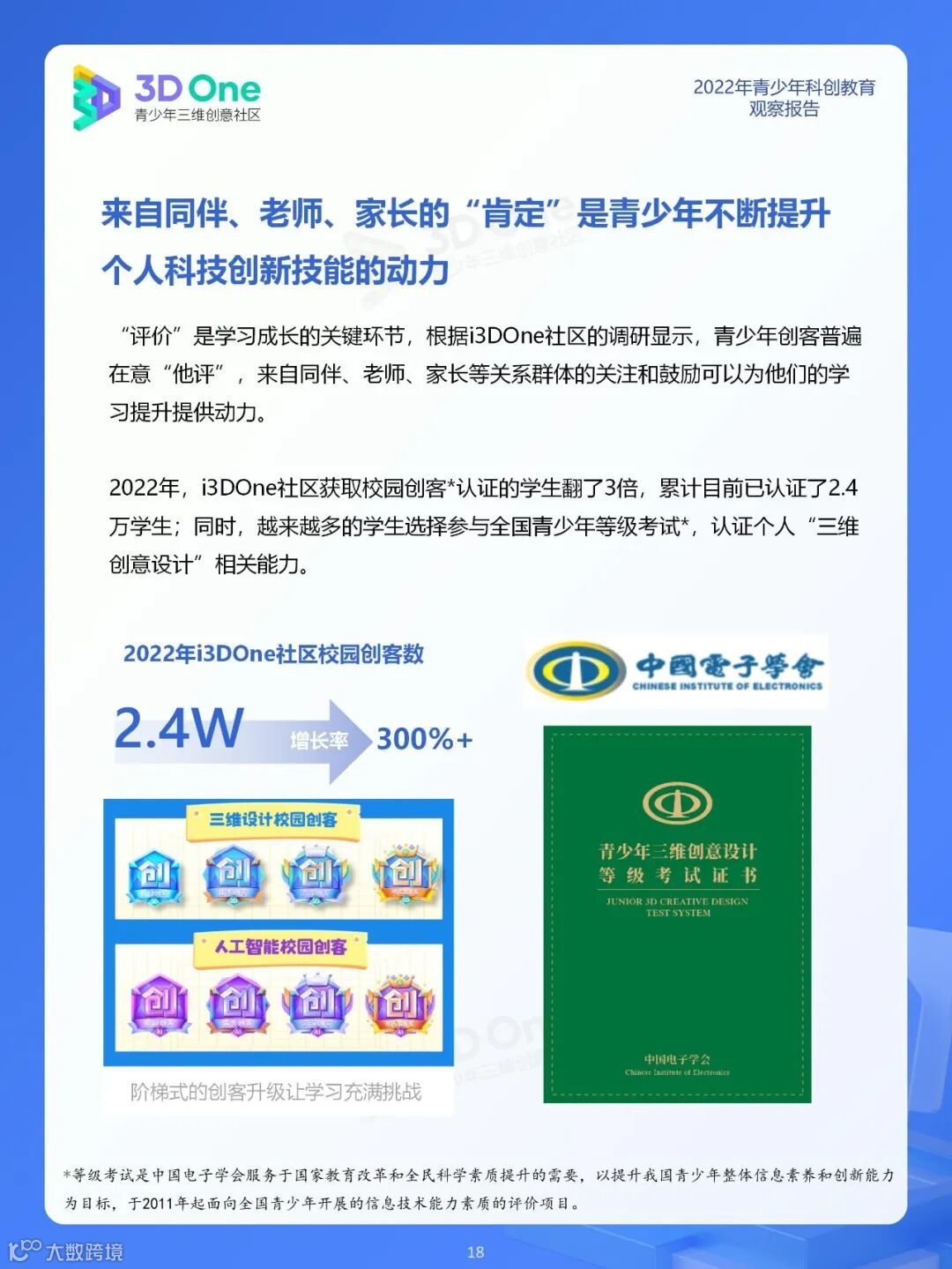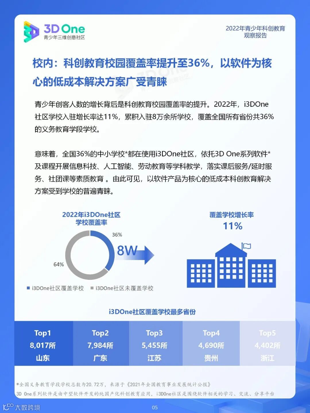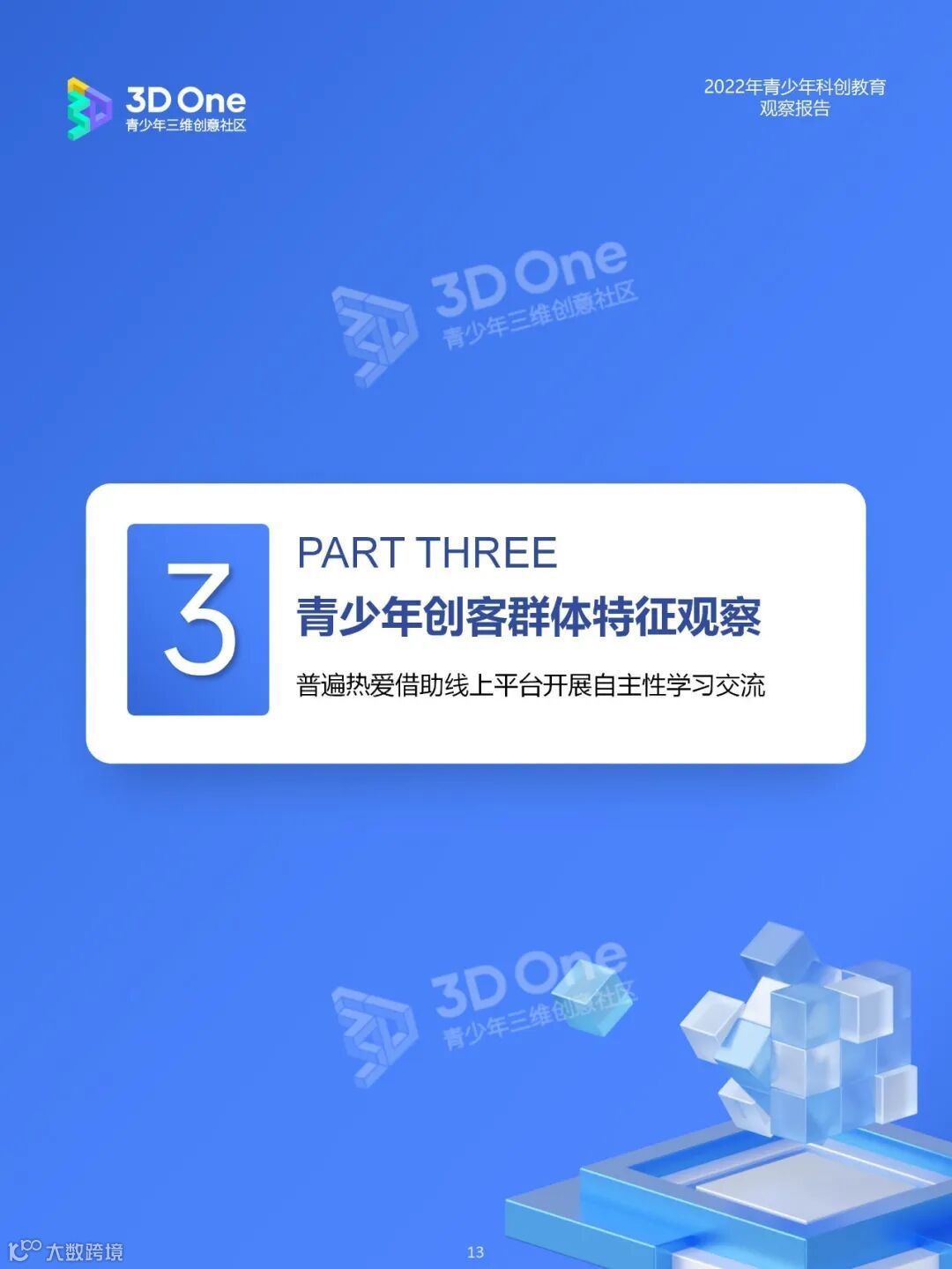 为帮助科创教育相关从业者在持续发展的时代中找到应对方式,同时在不断变换的浪潮中发掘自身价值创造新机遇, i3DOne社区特发布「2022年青少年科创教育观察报告」,希望在2023年初规划、展望之际,从青少年科创教育市场、教育资源及青少年创客人群特征三个方面,为科创教育的参与者提供方向参考。