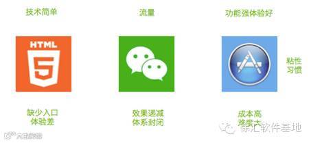 优势:开发技术简单,研发周期短,微信可以带来流量和用户
