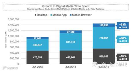 HTML5手机网站、微信公众号、APP这三种载体都有各自的优势,对于成熟的创业公司来说,如果预算充足,这三种全覆盖是最理想的,但是现实往往让我们只能先选择其中某个,如何选择我们先来看一组最新数据: