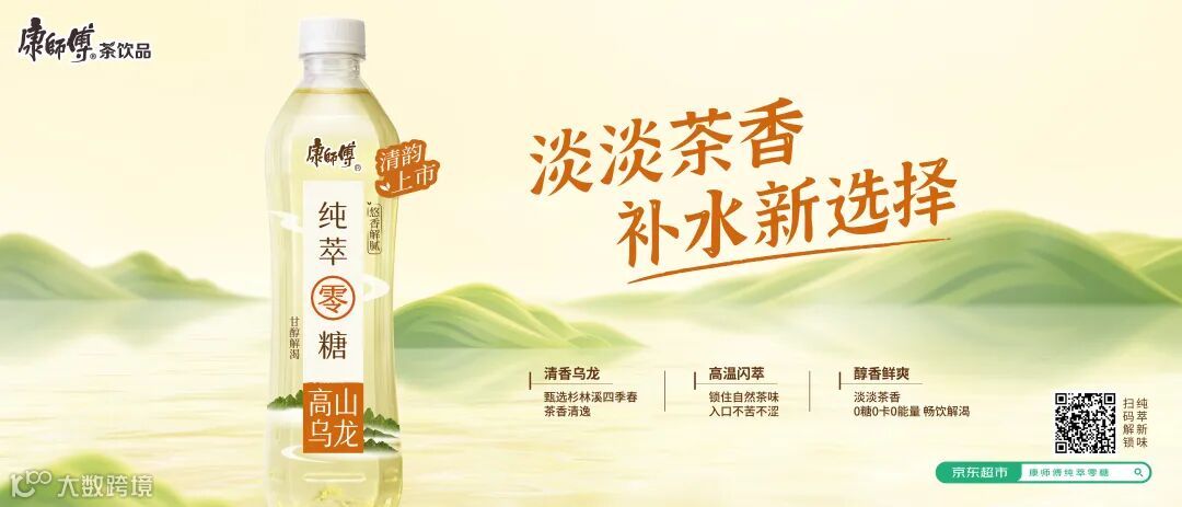 康师傅在其中洞察到一个细分的消费者需求:喝白水觉得没味,喝浓茶太过苦涩。纯萃零糖原味茶饮以其淡淡茶香为不爱喝白水的年轻人提供了“日常水替”,继去年推出的云雾绿茶和茉莉花茶,今年又上新了一款高山乌龙,为年轻人夏季“补水解渴”提供了一个新选择。