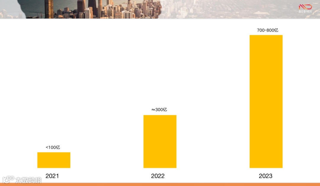 2021年不到100亿,2022年差不多300亿,2023年预计有700-800亿的规模。