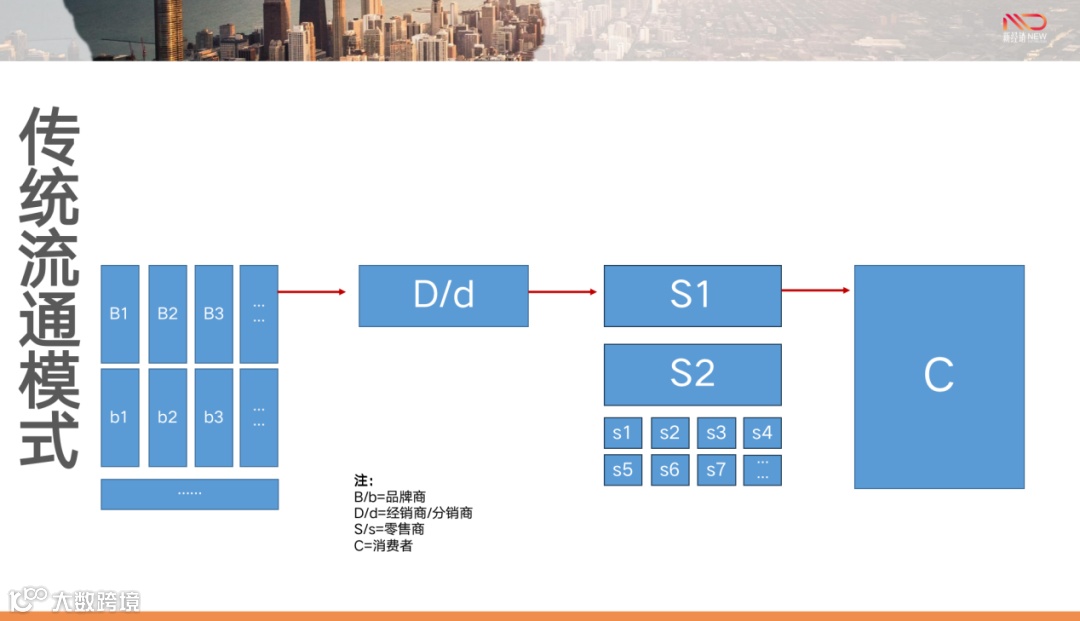 传统流通模式,从工厂,到品牌中心仓,到一批二批,再到终端,最后才能到消费者手中,加倍率在1.8-2之间。