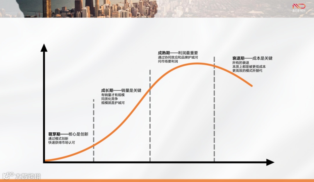 第四阶段,衰退期,成本最关键。所有的衰退,本质上都是被更低成本、更高效的模式所替代。