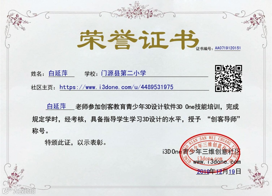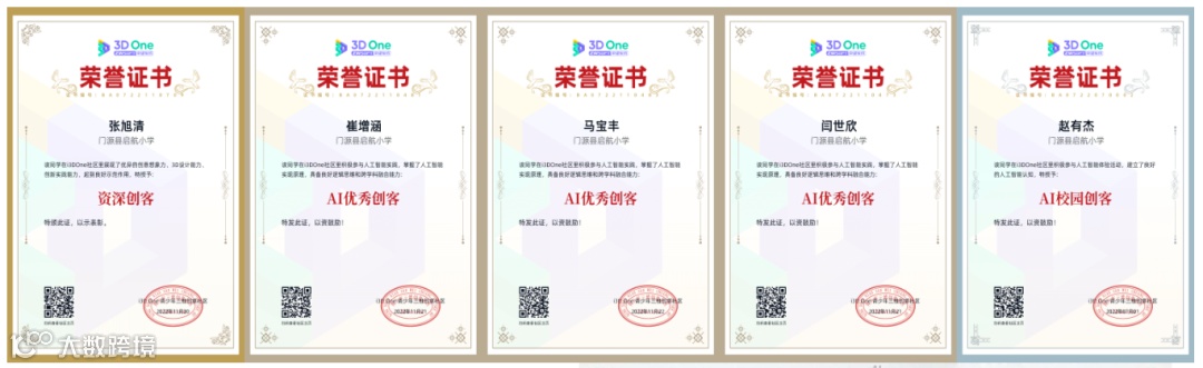 一分耕耘一分收获。学生在学习与实践中得到快速成长,至今启航小学已有27位学生被i3DOne社区授予优秀“校园创客”。与此同时,学生积极参与创意设计类、人工智能竞赛,并多次获奖。