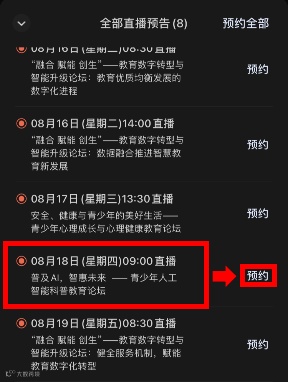 请选择08月18日(星期四)09:00的直播场次。直播开始时您会收到开播提醒,点击即可进入观看。